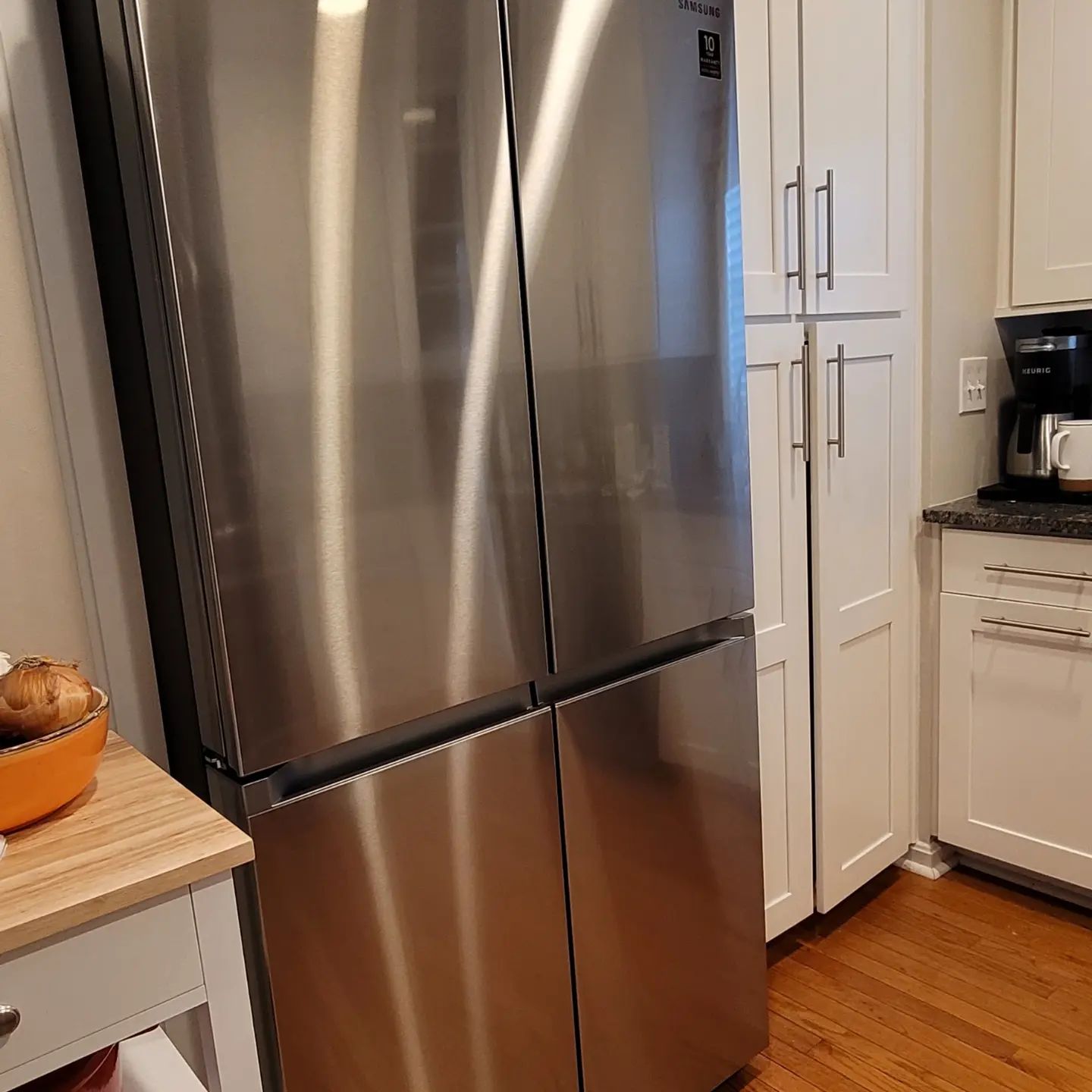 **Update: Despite paying in advance for the fridge install, they said they didn’t like our copper tubing and the fact that our shut off valve was not behind the fridge. So, we currently have one massive brand new refrigerator in our garage, and another massive 10-year-old refrigerator sitting in the middle of our kitchen. I knew it was too good to be true. Womp. Womp.