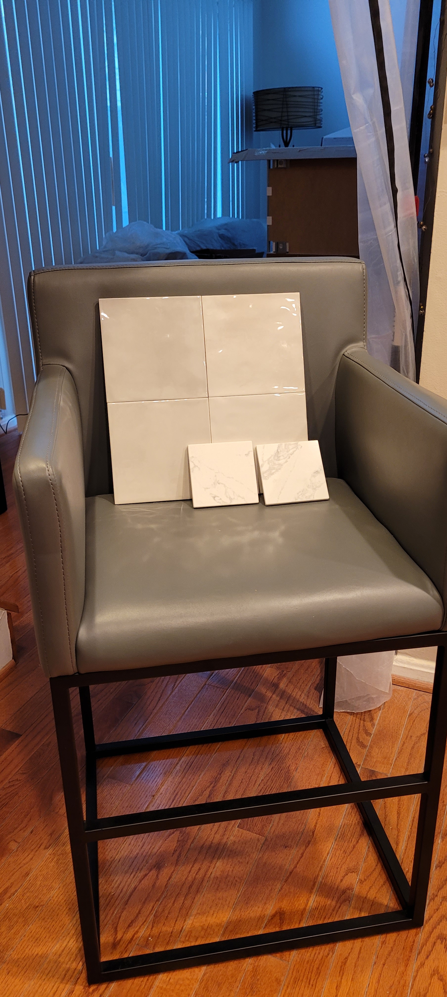 We also found the most awesome/gorgeous/comfy stools on FB Marketplace from a guy who was unexpectedly moving after having just renovated his kitchen. Brand-new, still in boxes, and at a third of the cost of what I had just been about to pay a company! Now that they are here, I’m having second thoughts about the color, so they may end up back on Marketplace for someone else to googly-eye over them. Womp, womp.