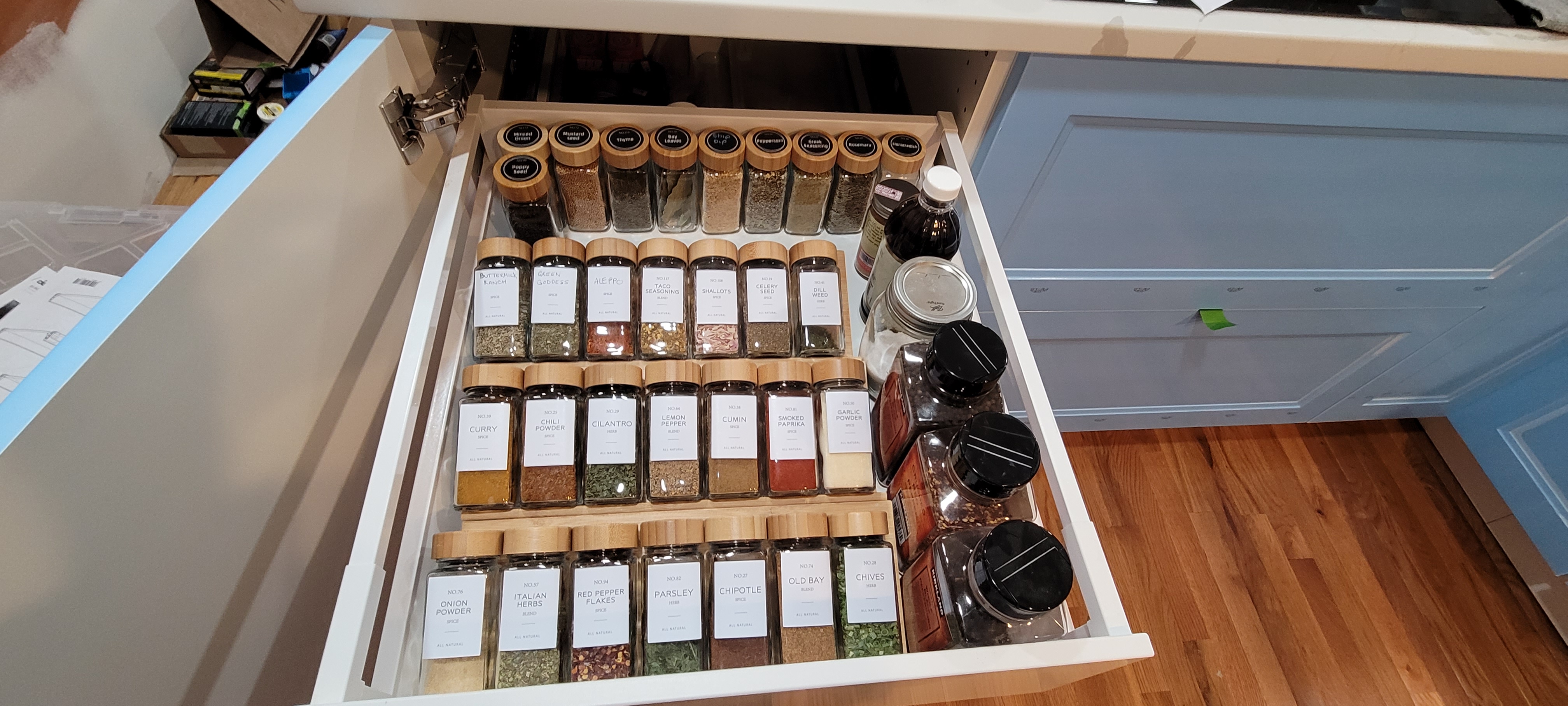 We still have to paint, which happens on Monday, we have to trim everything, and then we can start tiling next week. Then we can finally remove the ugly blue cabinet coverings and attach the gorgeous cabinet hardware, which certainly beats green painters tape handles. A long way to go, but we have an oven!