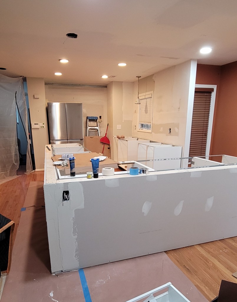 Standing around scratching our heads while trying to imagine bright green painter’s tape coming to life in the form of a giant “L” shaped island got old, so today’s progress came in the nick of time. This isn’t our first construction rodeo, so we are confident our marriage can stand the test of a(nother) kitchen renovation, but the 14th tape-laying exercise at midnight last night seemed to be spitting in the face of fate.