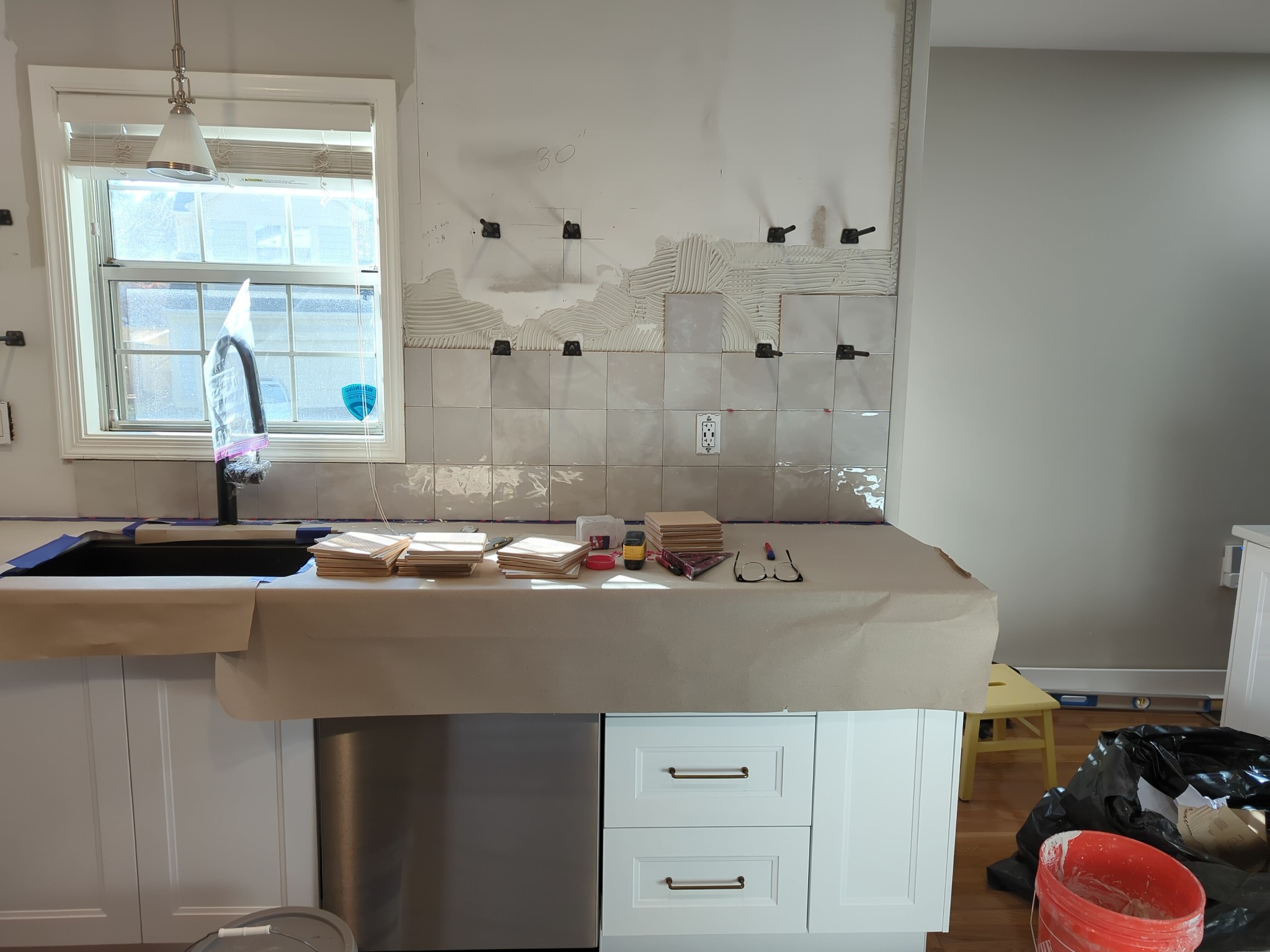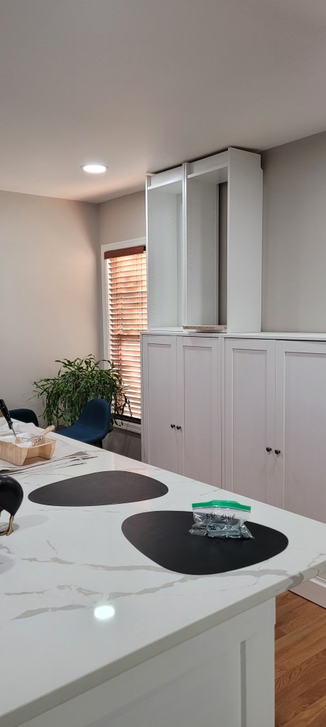 We are next going to turn our sites to building out the pantry wall cabinets this week. More on that to come, but here’s where we stand now: