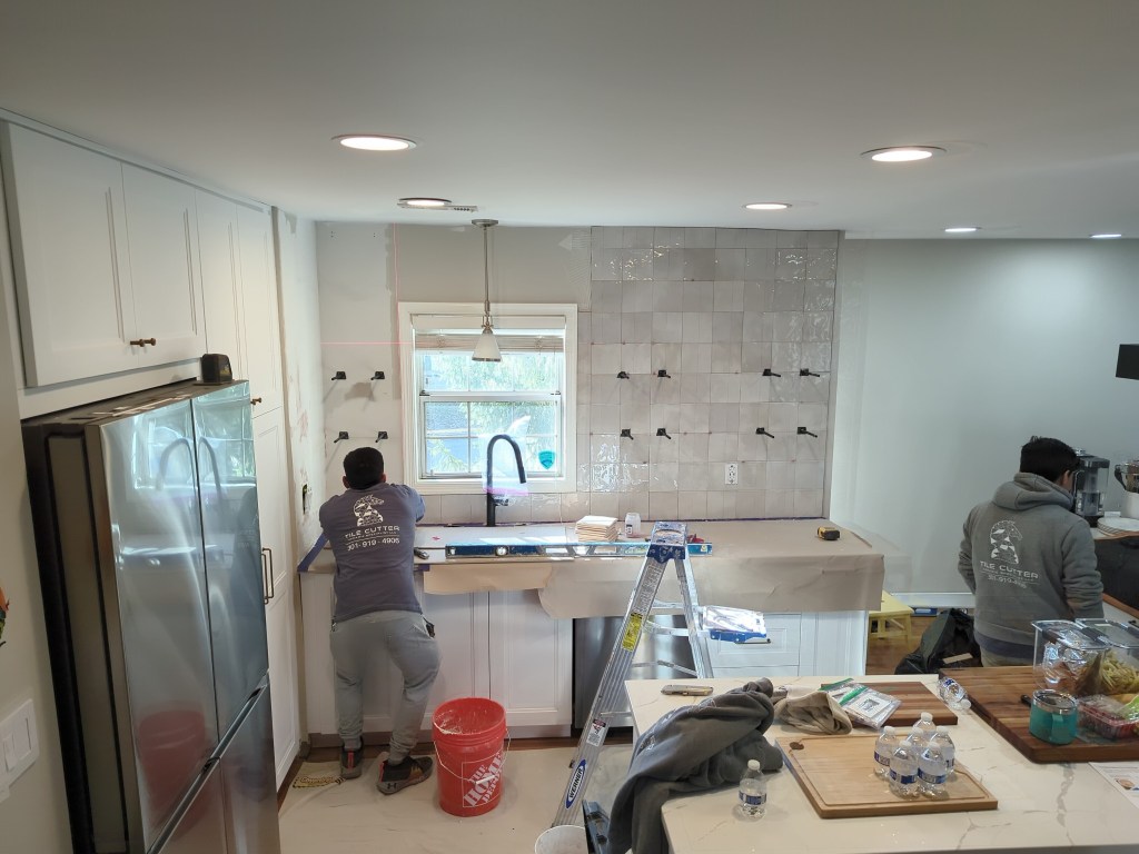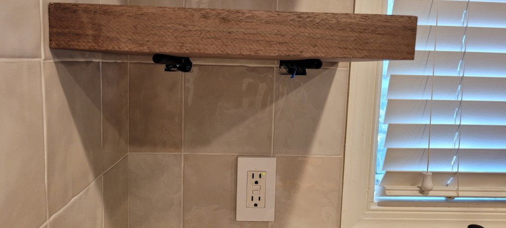 We are in a brain freeze/holding pattern/pulling-hair-out/counter-head-bang conundrum with these d-a-m-n floating shelves. More on that later — maybe the hivemind out there can come up with some suggestions for how we might solve this debacle because we are fearful all that pretty tile may be a thing of the past if we do not figure this out.