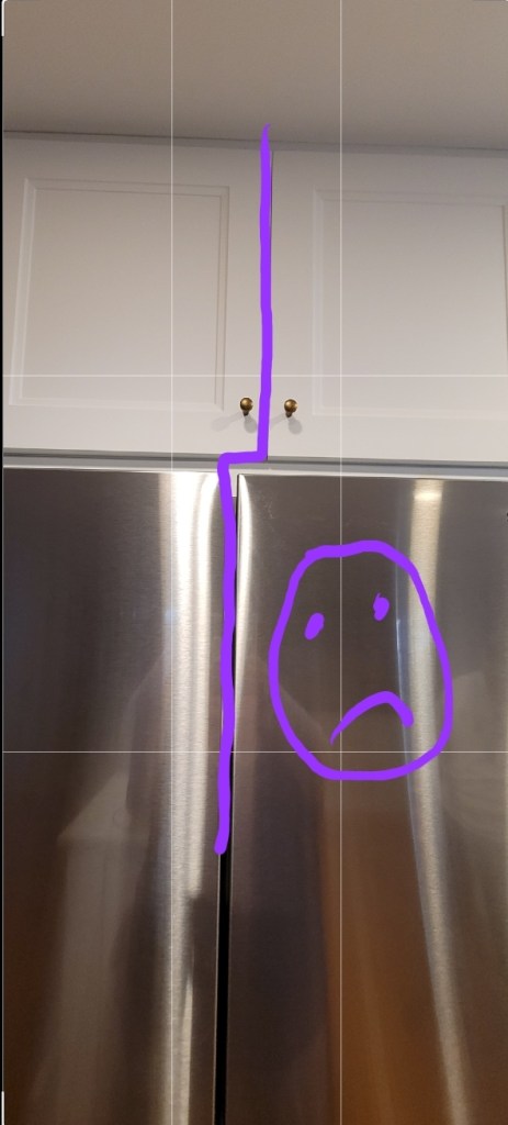 3) The pantry wall. We were on site every single day. If you have been through a renovation with a contractor, you know the questions come at you fast and furious. And what you get when you think things are obvious and need no explanation (the fridge center seam should align with the upper cabinet seam!) is this: