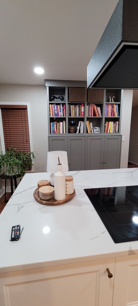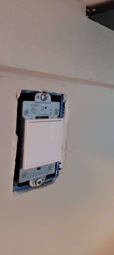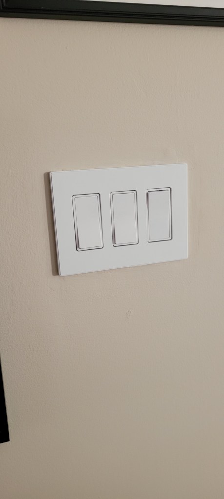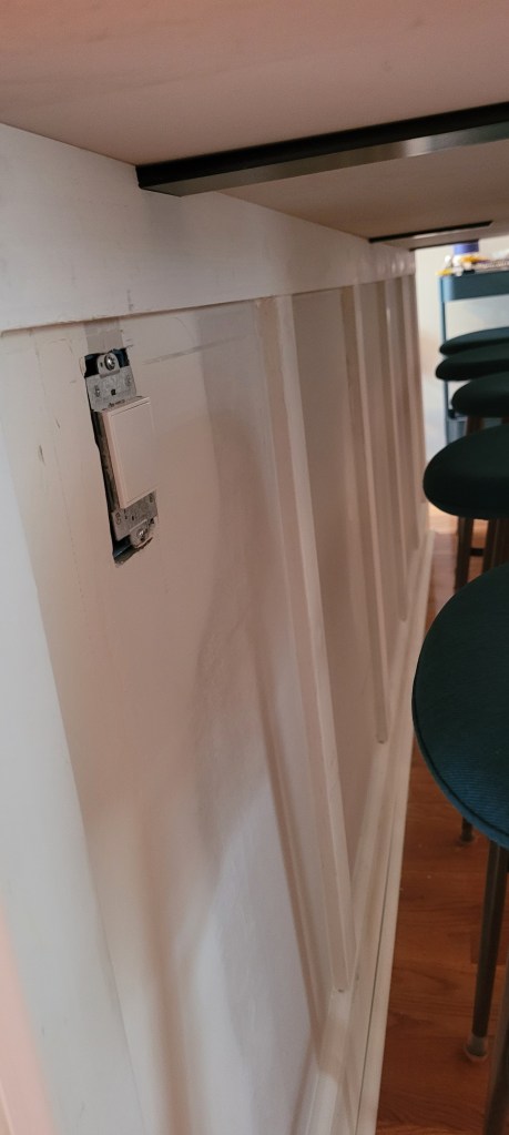 Instead, we finished lots of caulking and we switched out all of our outlet and light switch covers to these nifty screwless rockers for a nice clean look. Screw-in outlets are so 2022, after all 🙂 We also installed an Alexa-enabled switch for our over-head pocket lighting, so we don’t have to walk around the entire island to turn the lights off or on. A major upgrade for us.