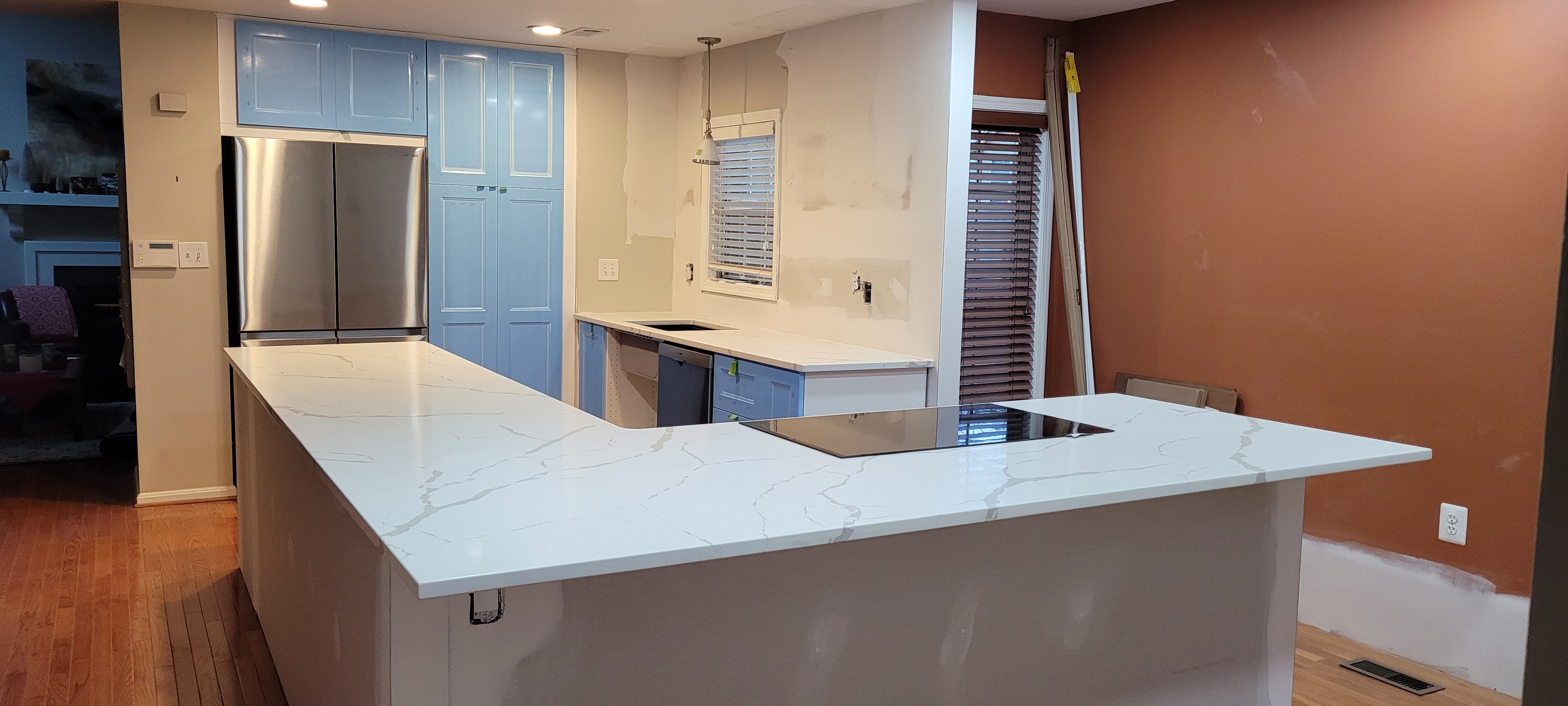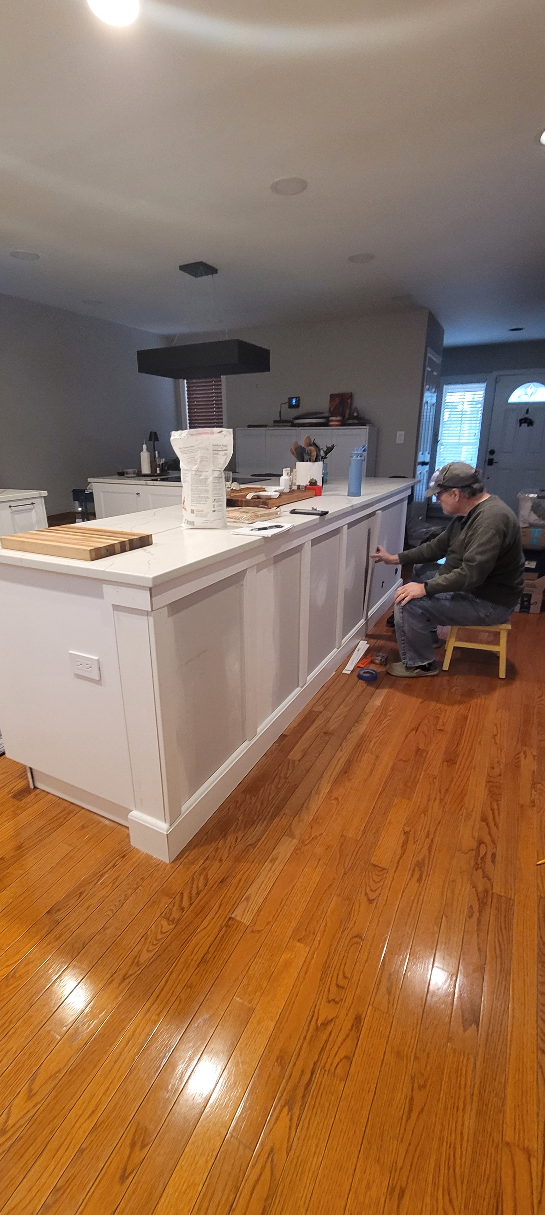 On that fateful day, with flooring guys in their knee pads looking to us to make a spur-of-the-moment call on what to do, we asked them to lay as much of the brand new flooring under the island as possible (sigh.)