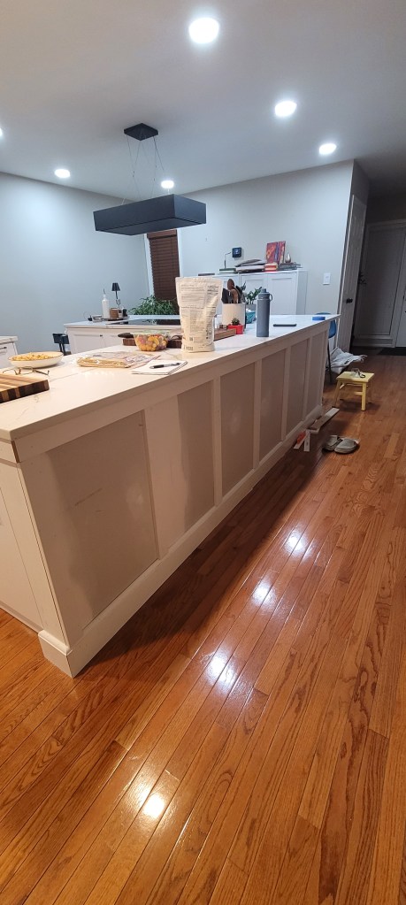 So, we wanted to leave a full 3 to 4 feet of walkway space and just couldn’t get picture what that would feel like until the kitchen was relatively finished.