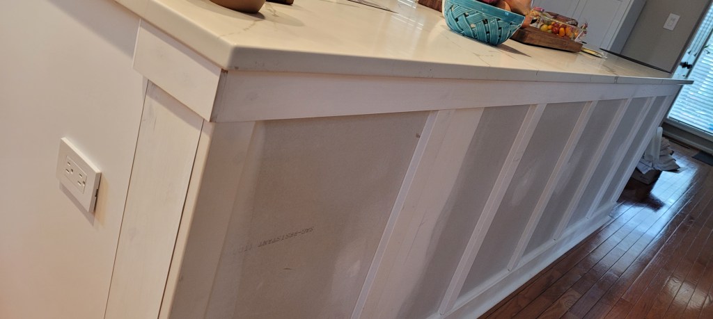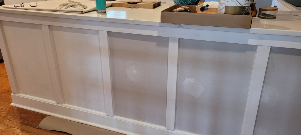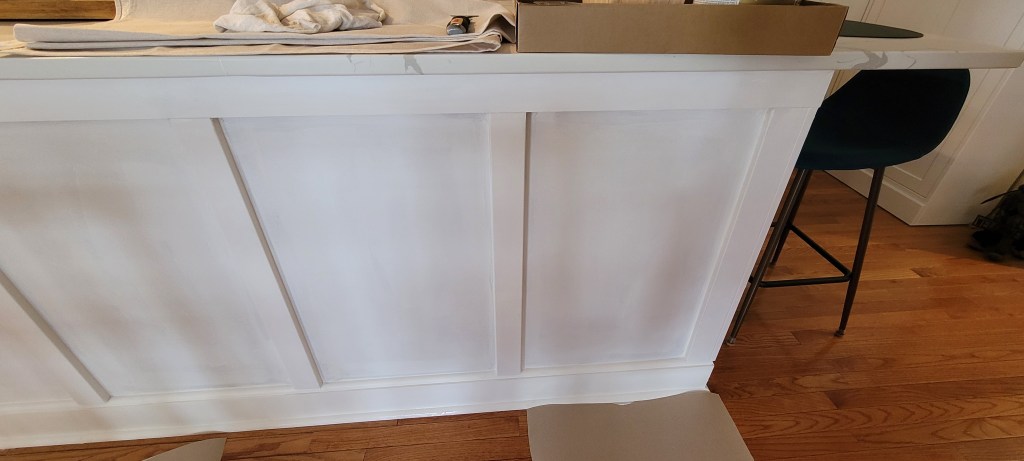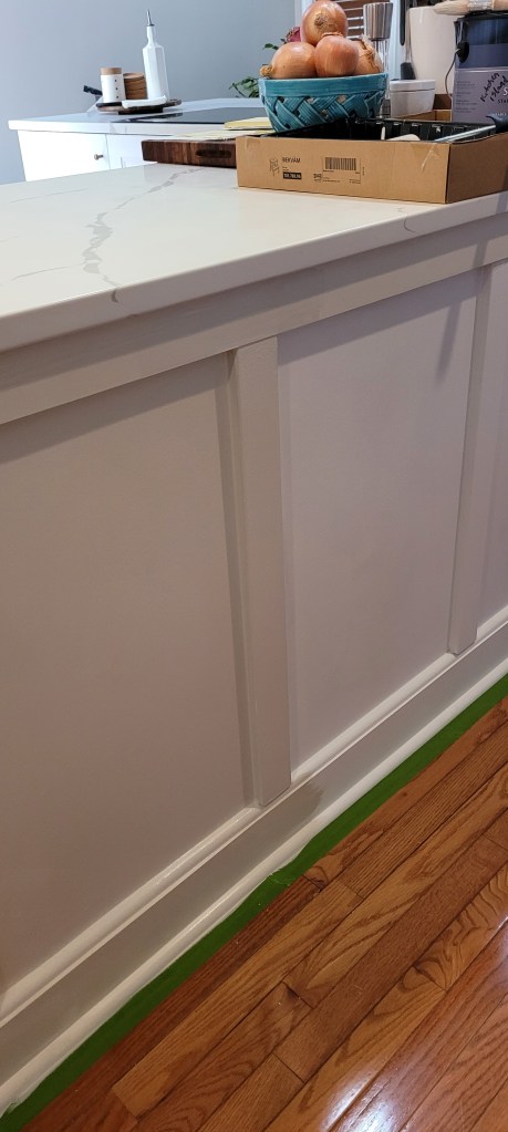 So, this week, we are priming everything and then we’ll get to painting the island and finishing up the toe kick on all the trim. And with that, the entire island will be FINISHED.