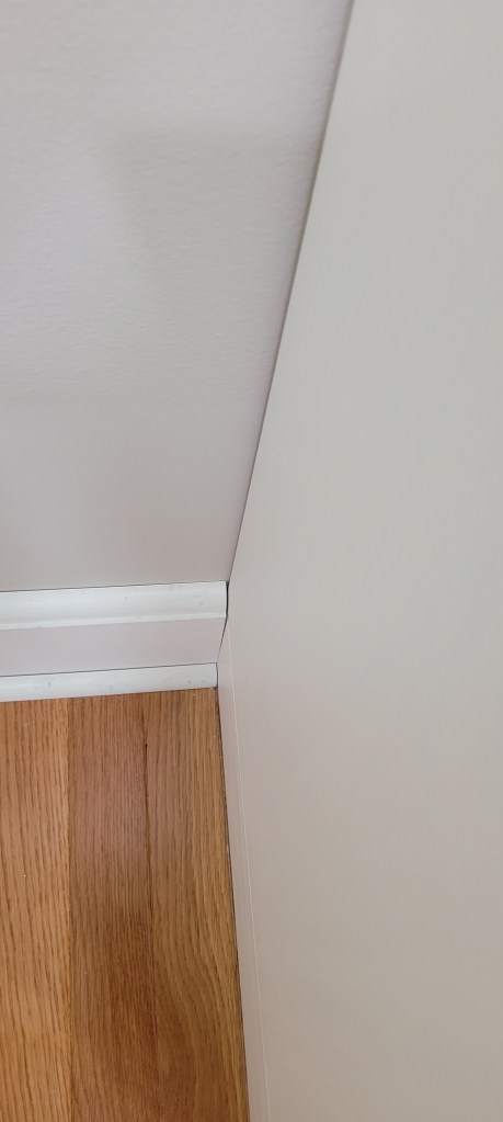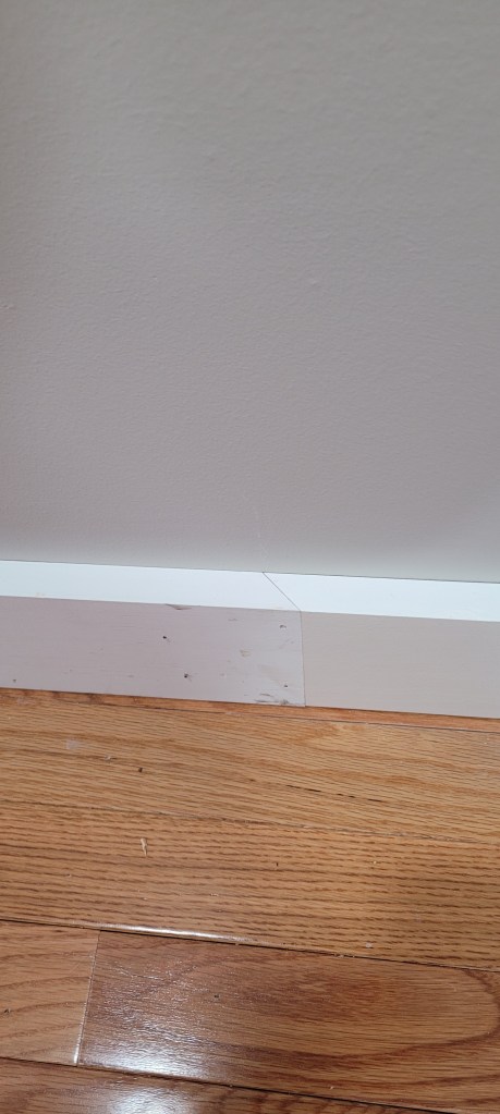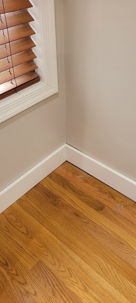 These below still need to be caulked, primed, and painted, but we like the bulked up 6″ baseboards, a far cry from the previously puny ones we had before.