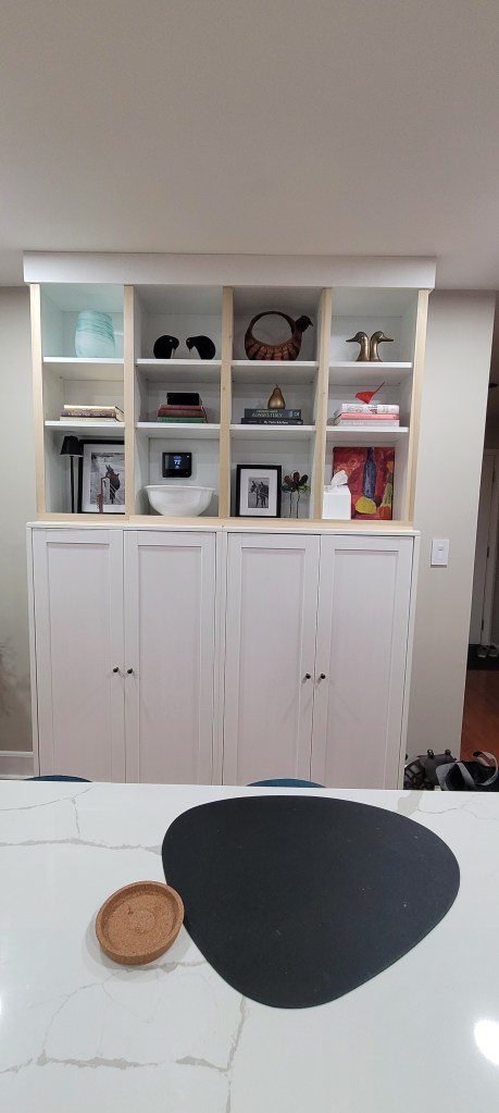 Yes, one of us just had to “style” the shelves for impending company — even though they were far from done at this stage!
