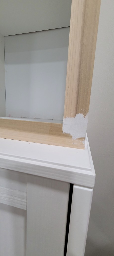 Because we knew we wanted to change the color on the unit anyway, we used the opportunity to add some additional trim to the crown to hide the separation, and then set about to painting the whole shebang, once again. Big sigh.