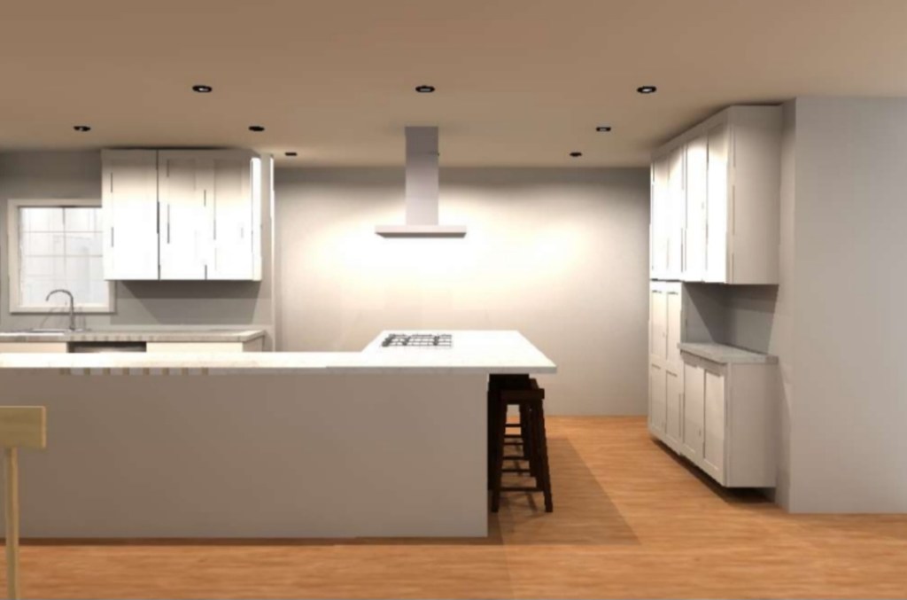 The rendering above is of the far end of our kitchen, which included the utility cabinets, albeit in a different configuration than we ultimately landed on.