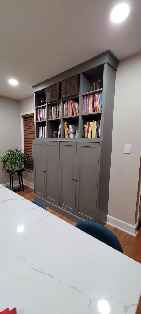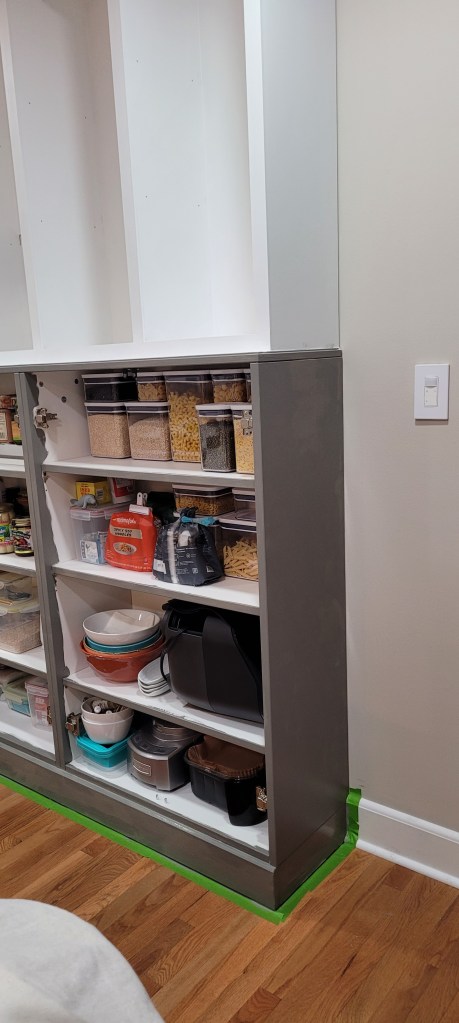 We just weren’t happy with our initial color choice on this floor-to-ceiling cabinet that sits at the back of our kitchen.